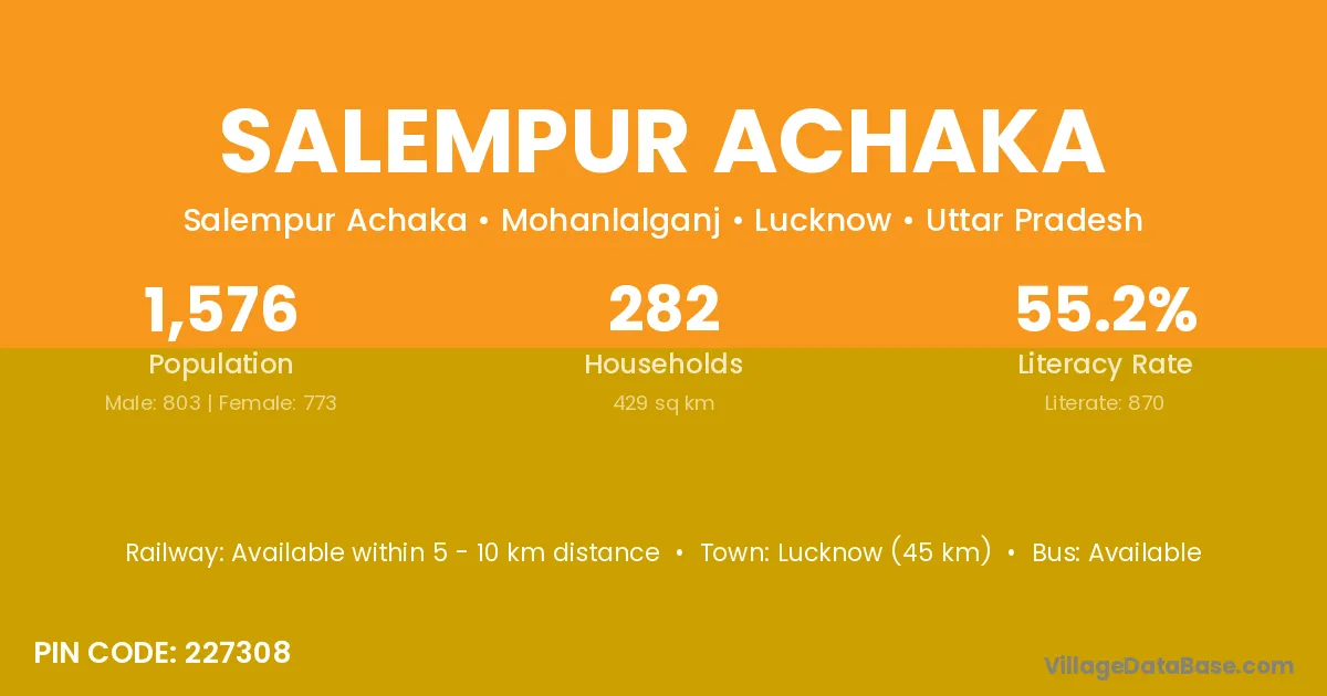 Salempur Achaka village has a total population of 1,576 people, of which 803 are males and 773 are females.