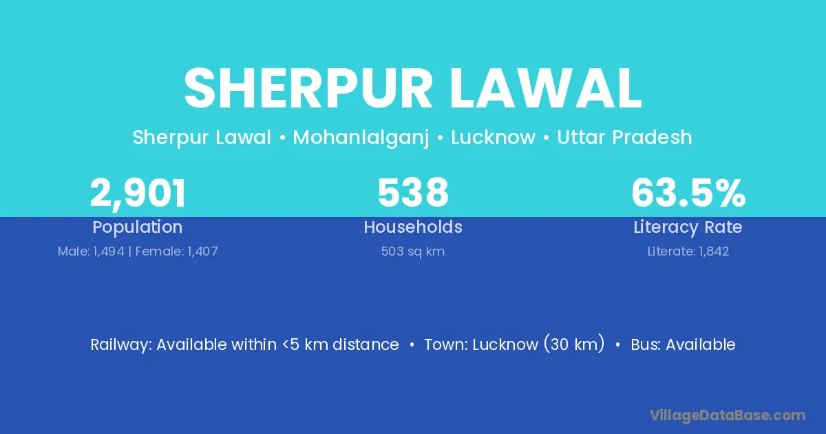 Lucknow (30 km) is the nearest town to Sherpur Lawal village for major economic activities and is located approximately 30 km away.