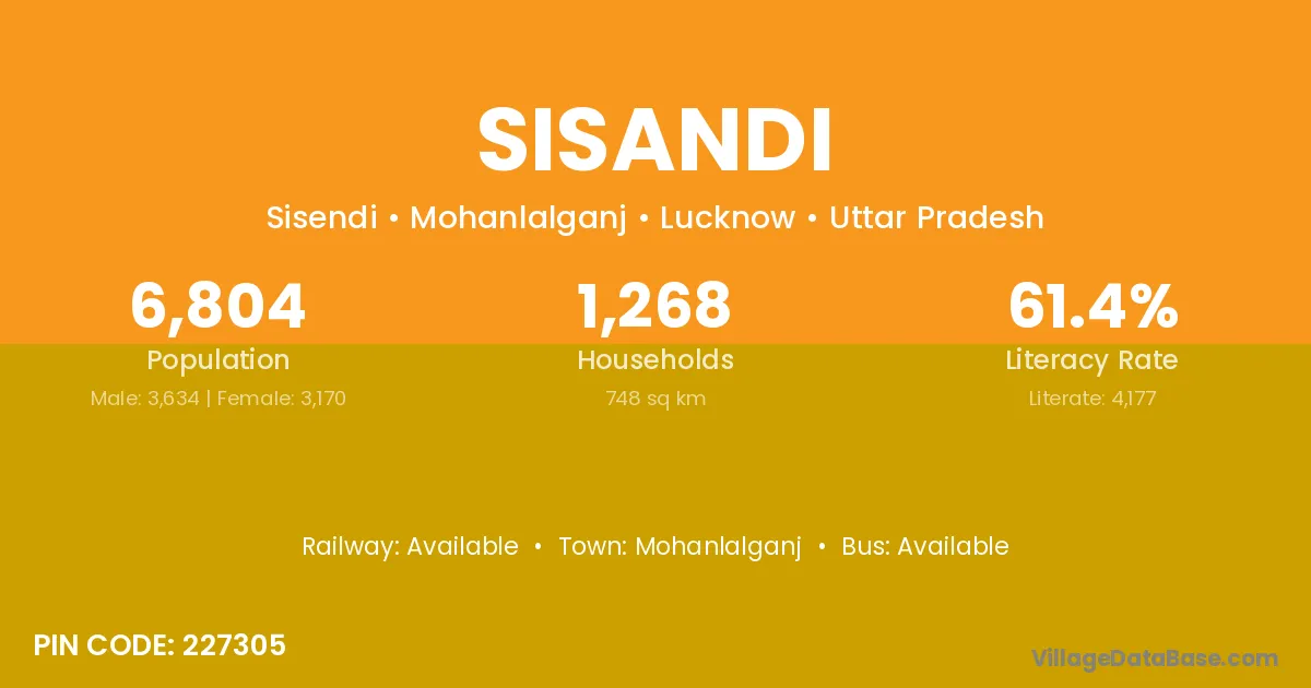 Sisandi village has a total population of 6,804 people, of which 3,634 are males and 3,170 are females.