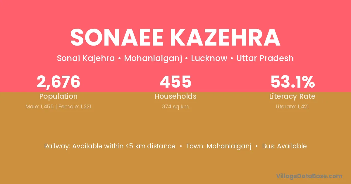 Sonaee Kazehra village has a total population of 2,676 people, of which 1,455 are males and 1,221 are females.