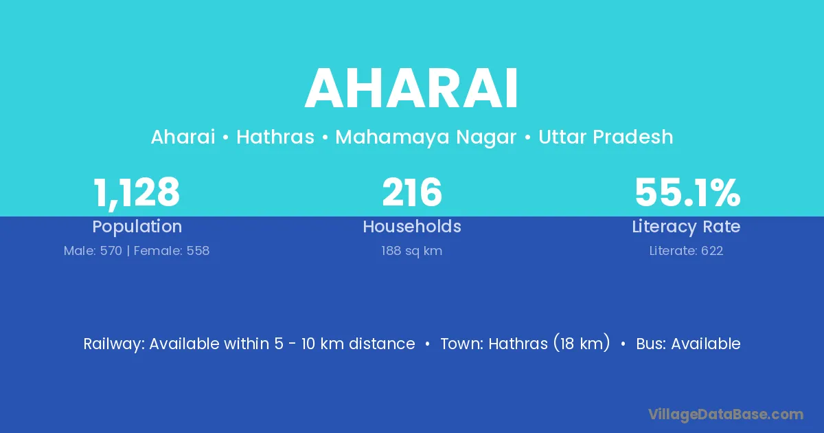 Hathras (18 km) is the nearest town to Aharai village for major economic activities and is located approximately 18 km away.