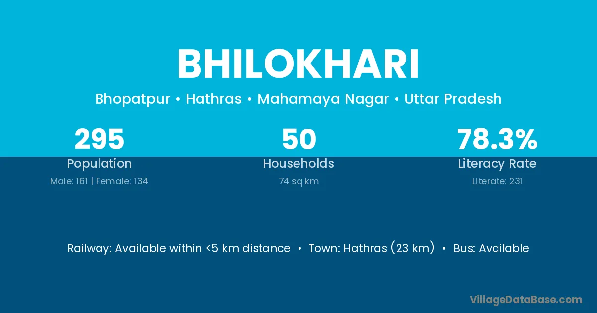 Hathras (23 km) is the nearest town to Bhilokhari village for major economic activities and is located approximately 23 km away.