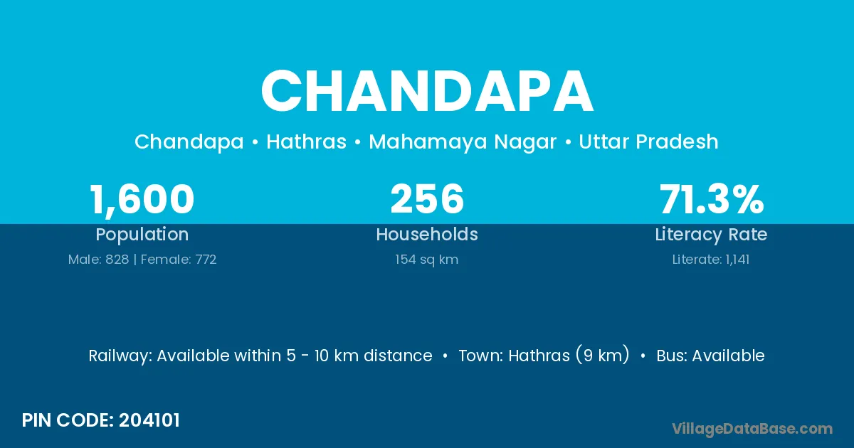 Hathras (9 km) is the nearest town to Chandapa village for major economic activities and is located approximately 9 km away.