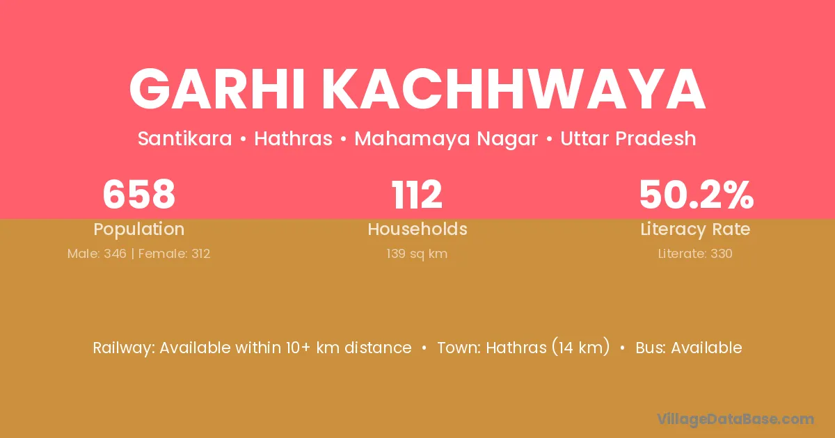 Hathras (14 km) is the nearest town to Garhi Kachhwaya village for major economic activities and is located approximately 14 km away.