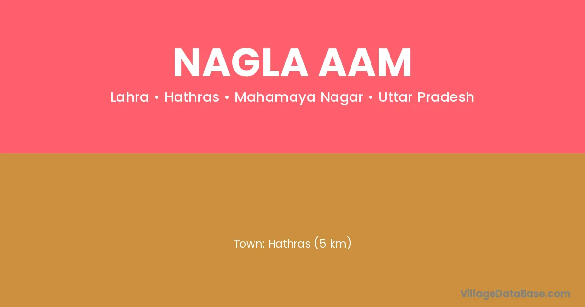 Hathras (5 km) is the nearest town to Nagla Aam village for major economic activities and is located approximately 5 km away.