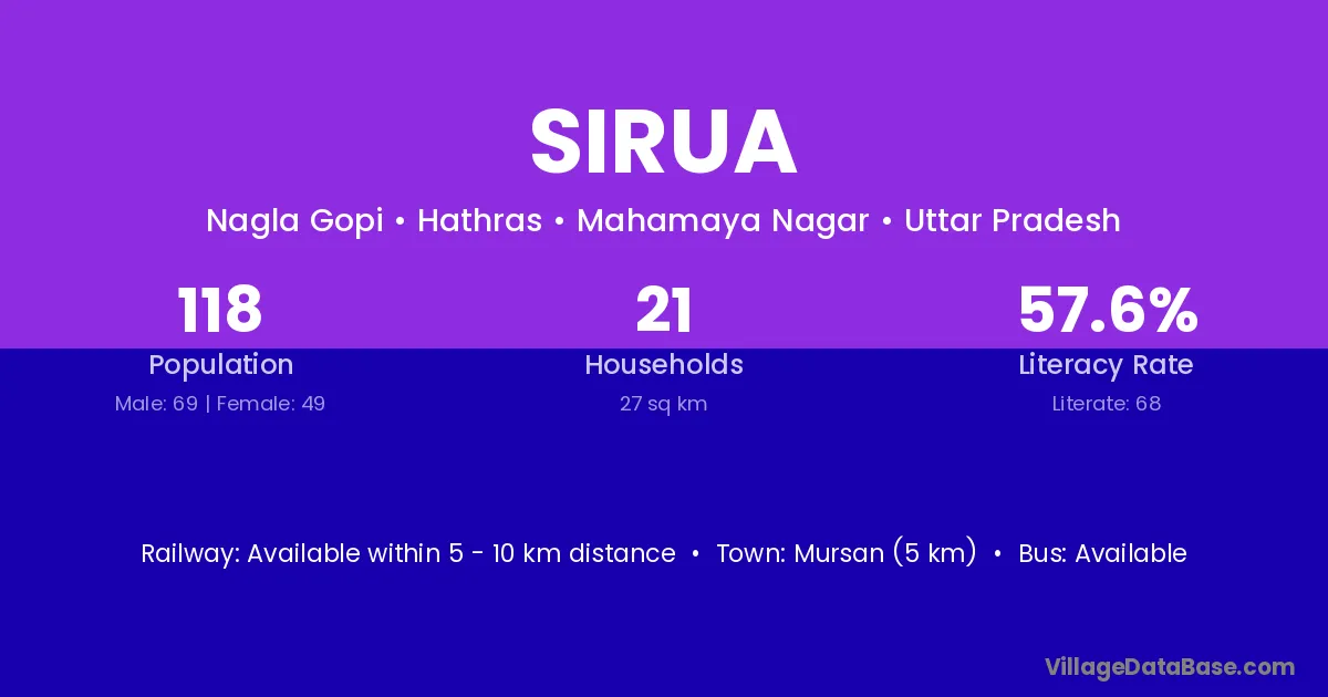 Sirua village is located in the Hathras Tehsil of the Mahamaya Nagar district in Uttar Pradesh .