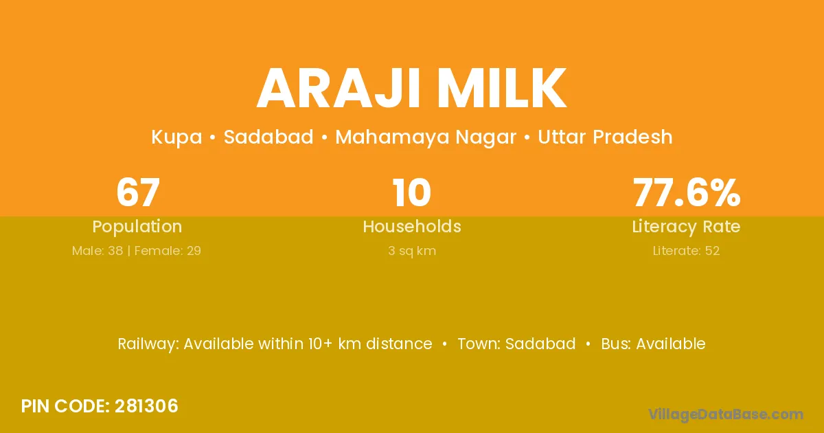 Araji Milk village is located in the Sadabad Tehsil of the Mahamaya Nagar district in Uttar Pradesh .