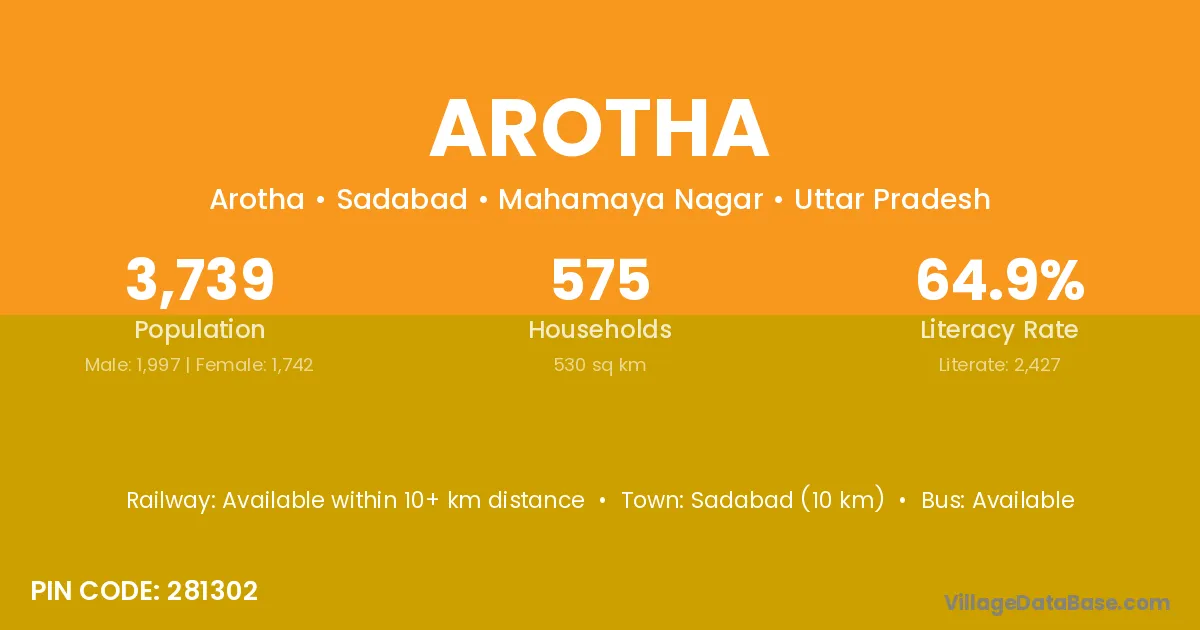 Sadabad (10 km) is the nearest town to Arotha village for major economic activities and is located approximately 10 km away.