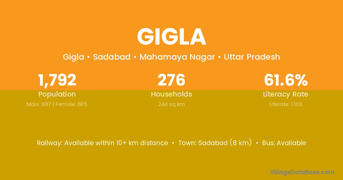 Gigla village is located in the Sadabad Tehsil of the Mahamaya Nagar district in Uttar Pradesh .