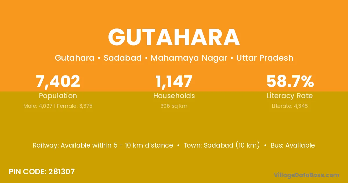 Gutahara village is located in the Sadabad Tehsil of the Mahamaya Nagar district in Uttar Pradesh .
