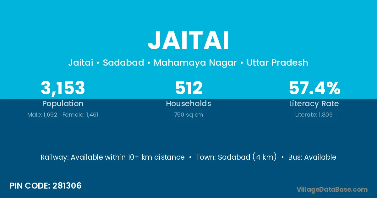 Sadabad (4 km) is the nearest town to Jaitai village for major economic activities and is located approximately 4 km away.