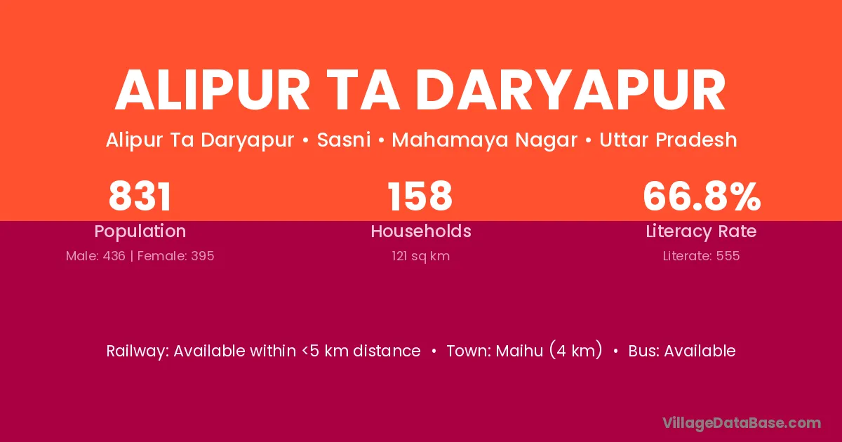 Maihu (4 km) is the nearest town to Alipur Ta Daryapur village for major economic activities and is located approximately 4 km away.