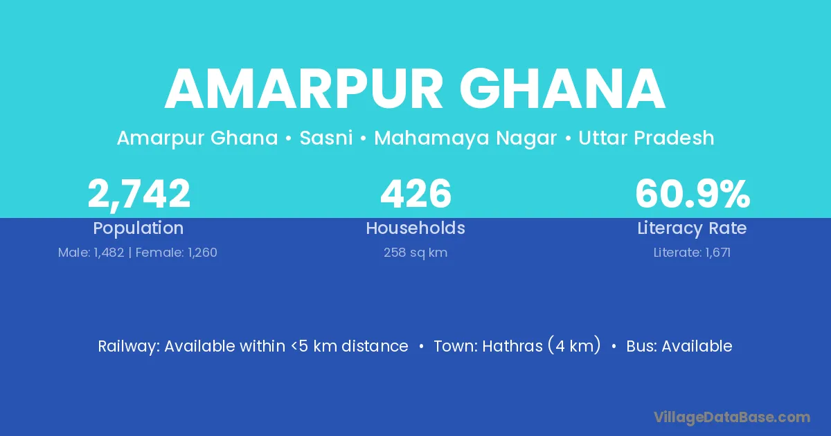 Hathras (4 km) is the nearest town to Amarpur Ghana village for major economic activities and is located approximately 4 km away.