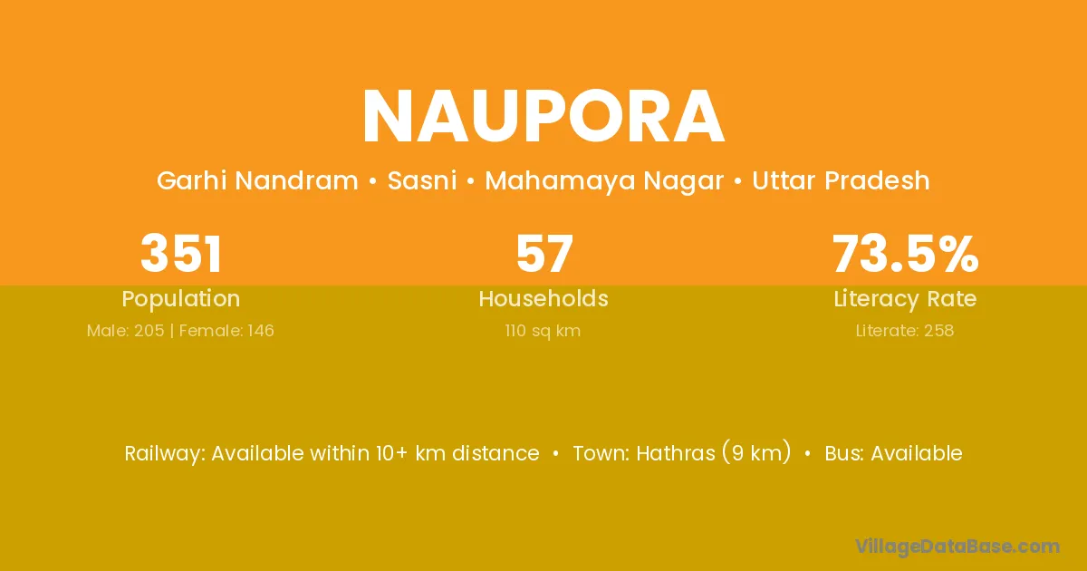 Hathras (9 km) is the nearest town to Naupora village for major economic activities and is located approximately 9 km away.