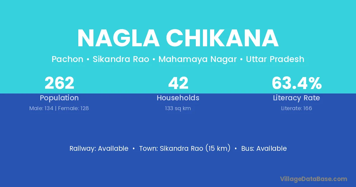 Nagla Chikana village has a total population of 262 people, of which 134 are males and 128 are females.
