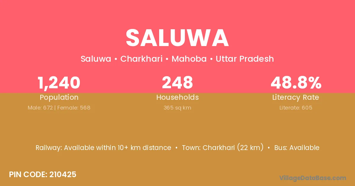 Charkhari (22 km) is the nearest town to Saluwa village for major economic activities and is located approximately 22 km away.