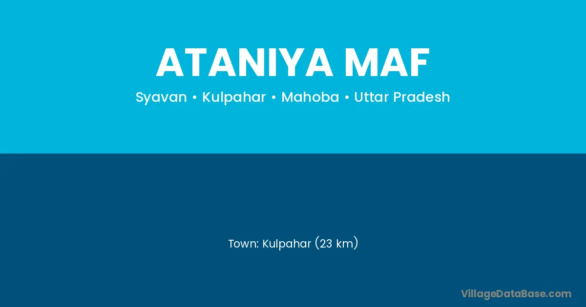 Kulpahar (23 km) is the nearest town to Ataniya Maf village for major economic activities and is located approximately 23 km away.