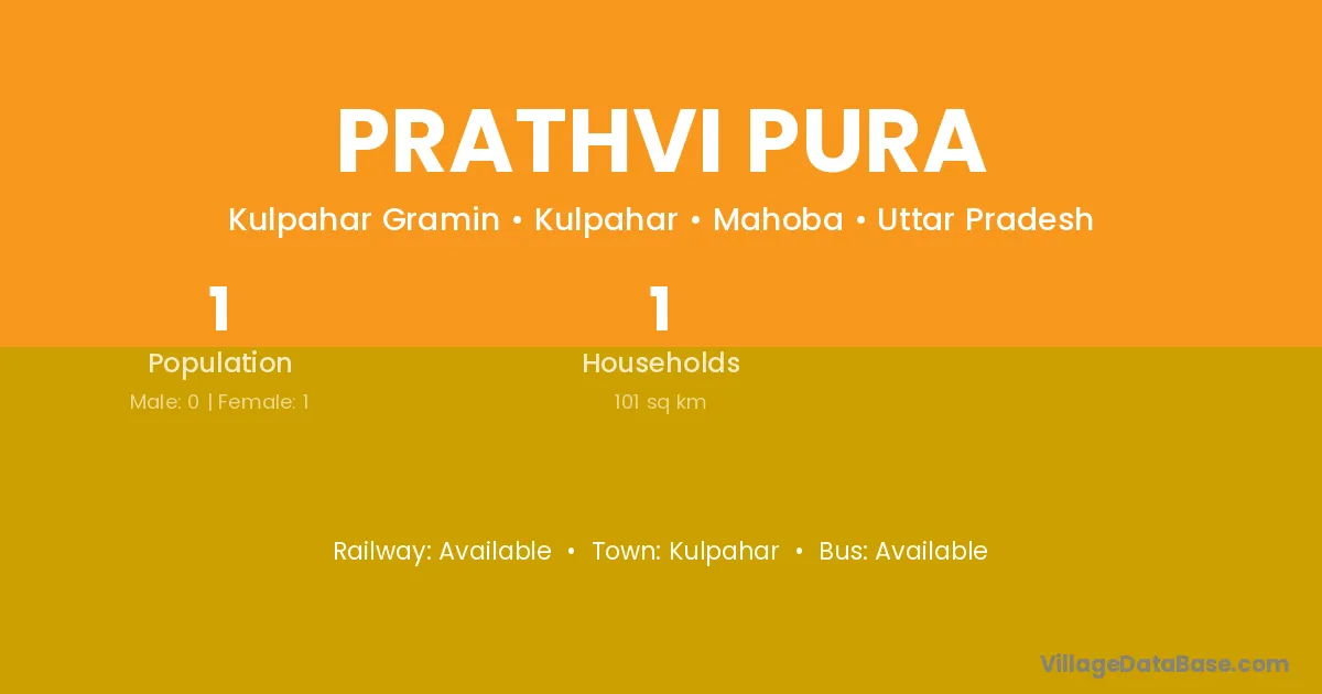 Prathvi Pura village has a total population of 1 people, of which 0 are males and 1 are females.