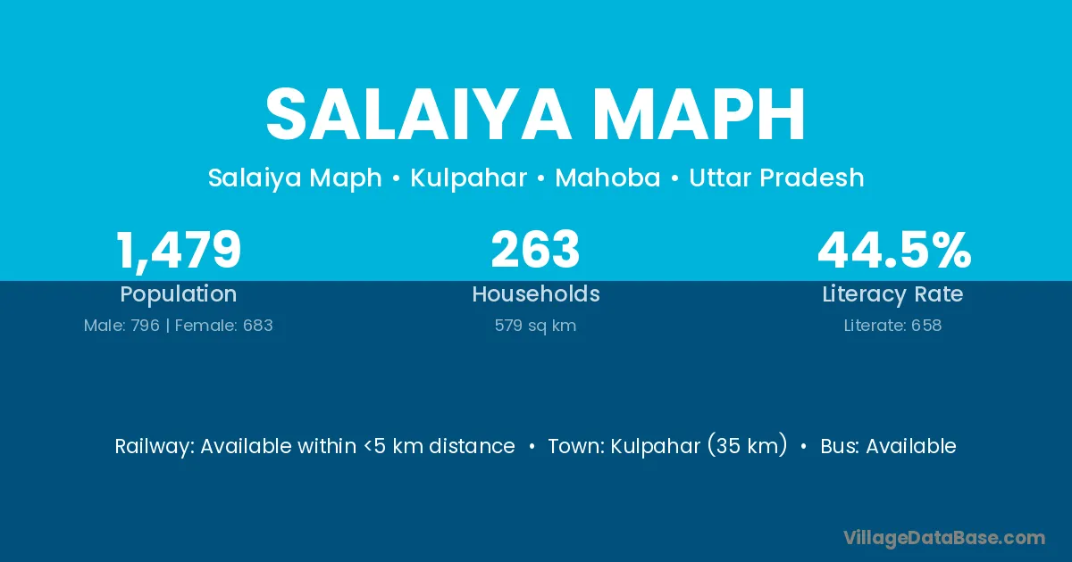 Kulpahar (35 km) is the nearest town to Salaiya Maph village for major economic activities and is located approximately 35 km away.
