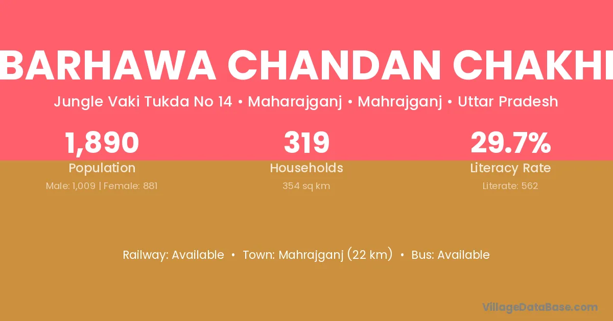 Barhawa Chandan Chakhi village has a total population of 1,890 people, of which 1,009 are males and 881 are females.