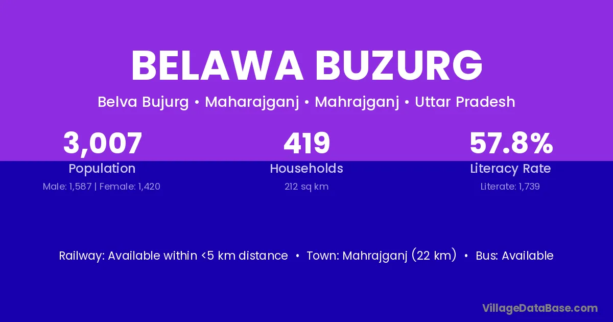 Mahrajganj (22 km) is the nearest town to Belawa Buzurg village for major economic activities and is located approximately 22 km away.