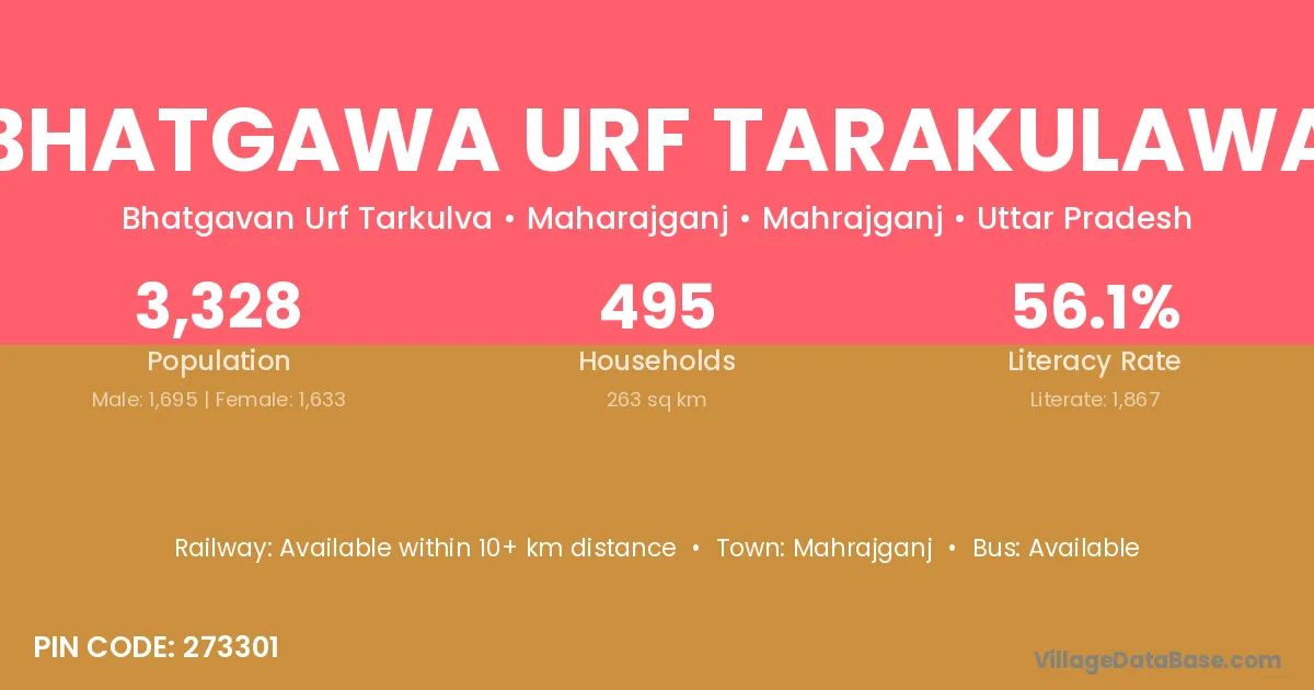 Bhatgawa Urf Tarakulawa village has a total population of 3,328 people, of which 1,695 are males and 1,633 are females.