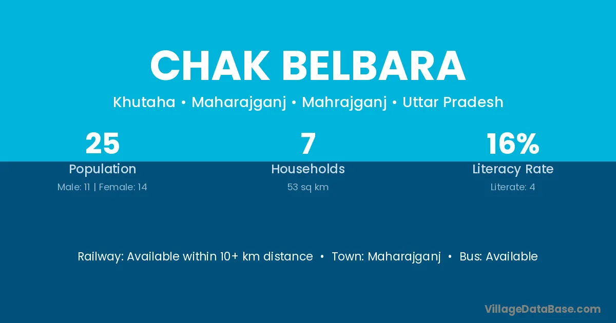 Chak Belbara village has a total population of 25 people, of which 11 are males and 14 are females.