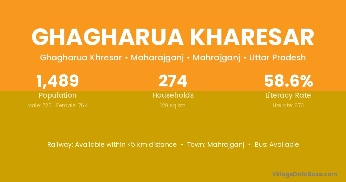 Ghagharua Kharesar village has a total population of 1,489 people, of which 725 are males and 764 are females.