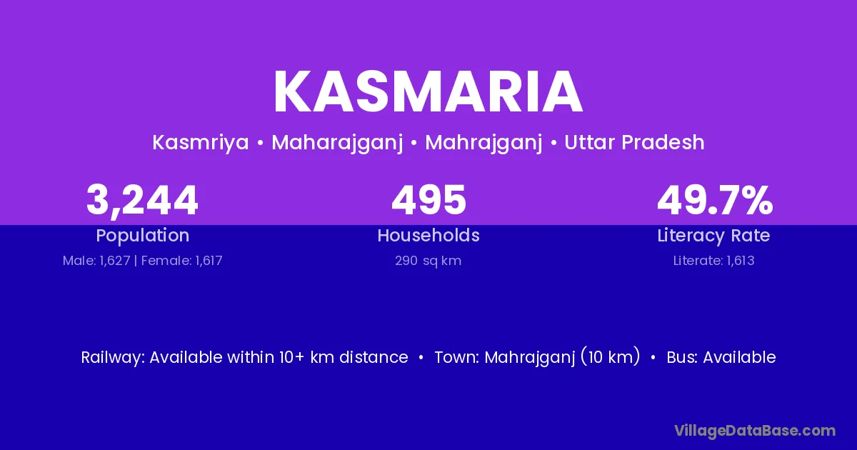 Mahrajganj (10 km) is the nearest town to Kasmaria village for major economic activities and is located approximately 10 km away.