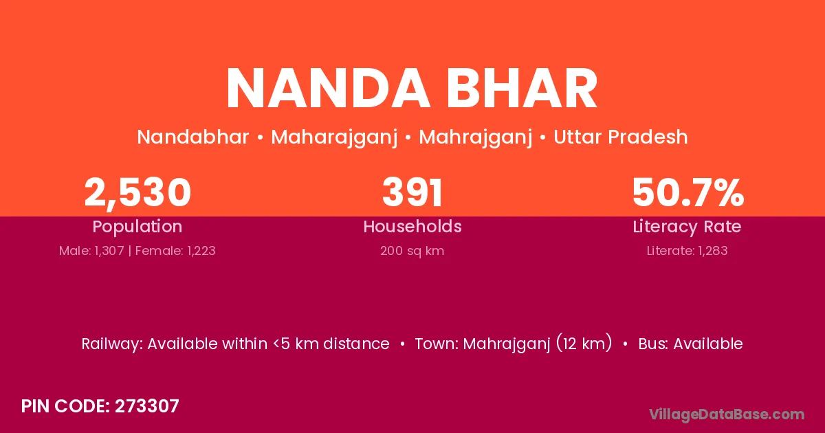 Mahrajganj (12 km) is the nearest town to Nanda Bhar village for major economic activities and is located approximately 12 km away.