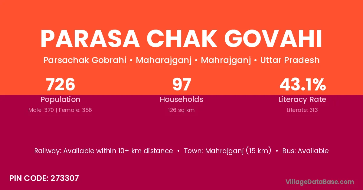 Parasa Chak Govahi village has a total population of 726 people, of which 370 are males and 356 are females.