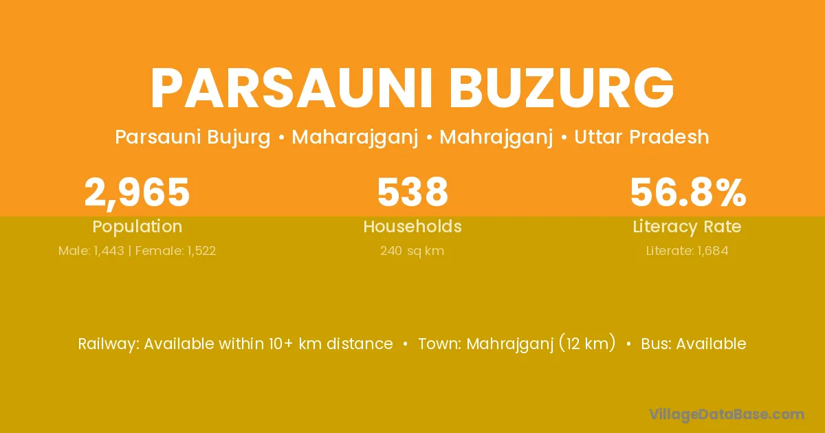 Mahrajganj (12 km) is the nearest town to Parsauni Buzurg village for major economic activities and is located approximately 12 km away.