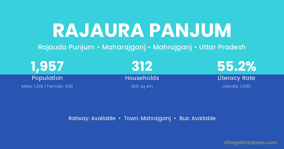 Rajaura Panjum village has a total population of 1,957 people, of which 1,018 are males and 939 are females.