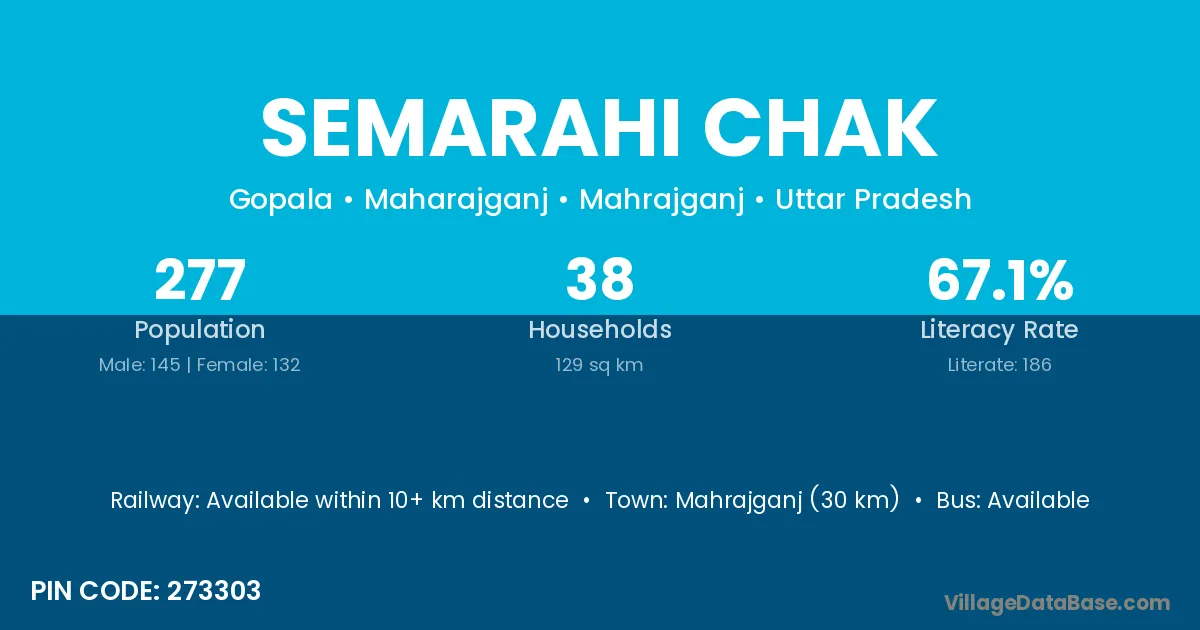 Mahrajganj (30 km) is the nearest town to Semarahi Chak village for major economic activities and is located approximately 30 km away.