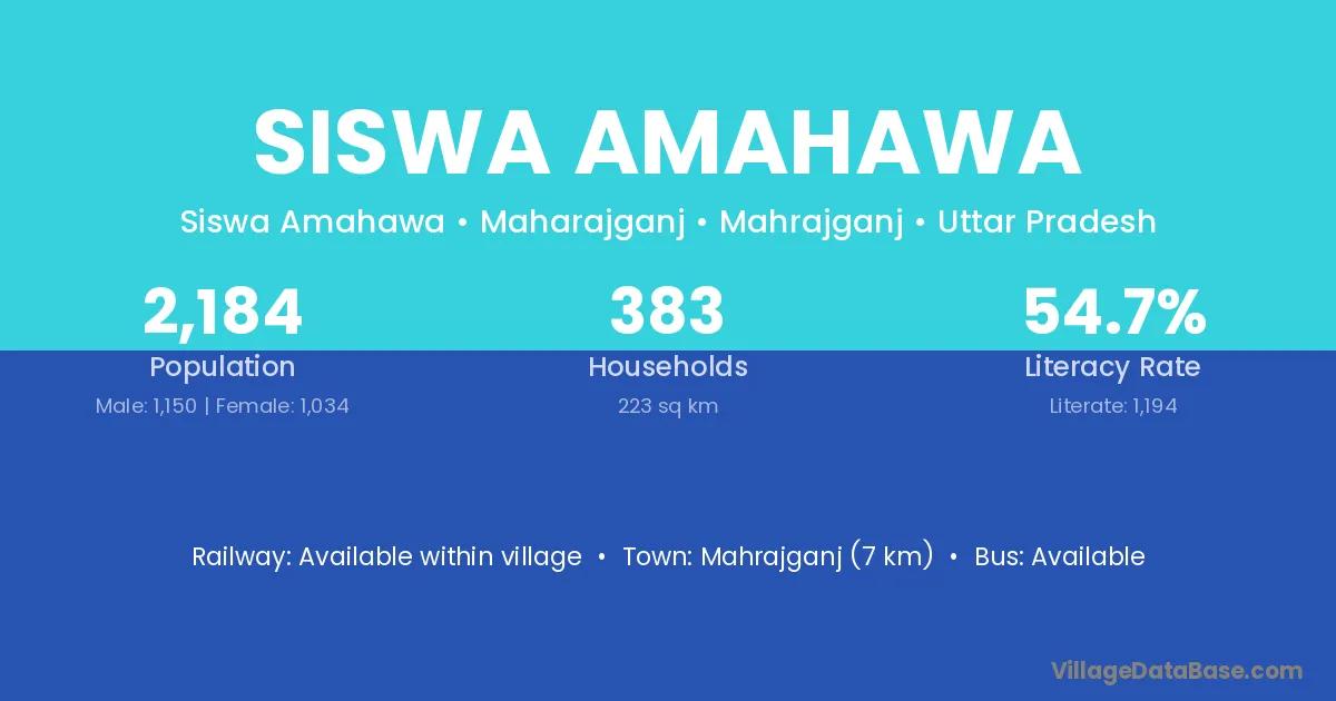 Mahrajganj (7 km) is the nearest town to Siswa Amahawa village for major economic activities and is located approximately 7 km away.