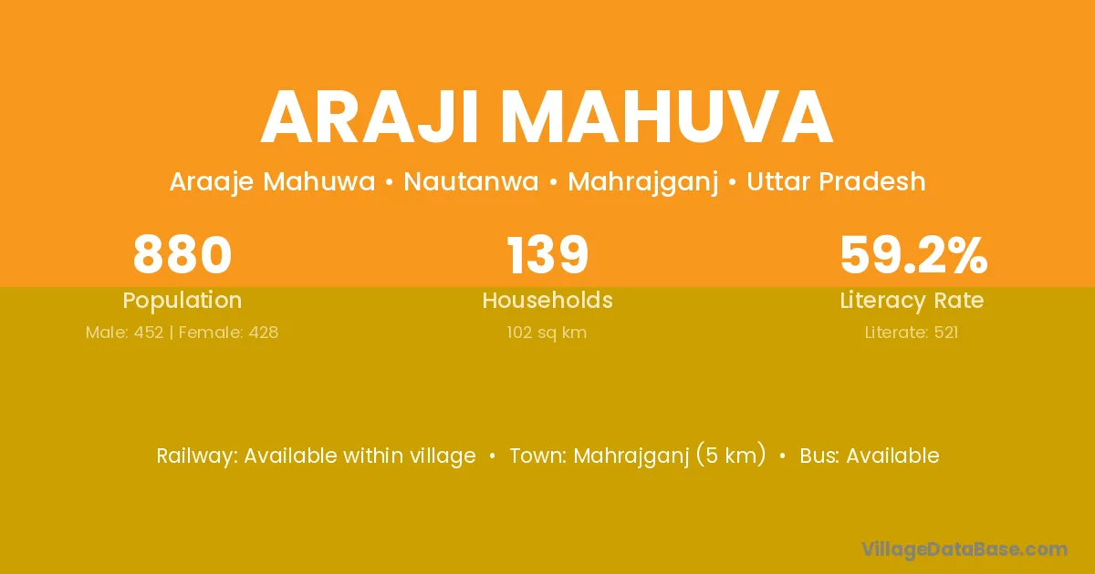 Mahrajganj (5 km) is the nearest town to Araji Mahuva village for major economic activities and is located approximately 5 km away.