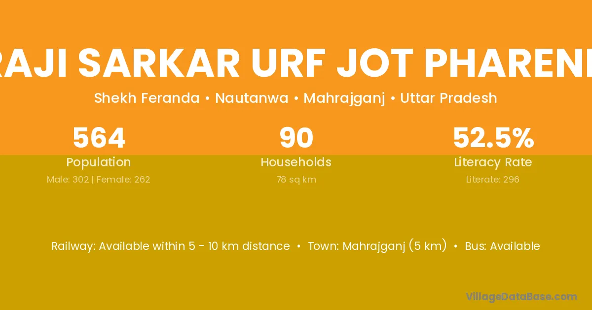 Mahrajganj (5 km) is the nearest town to Araji Sarkar Urf Jot Pharenda village for major economic activities and is located approximately 5 km away.