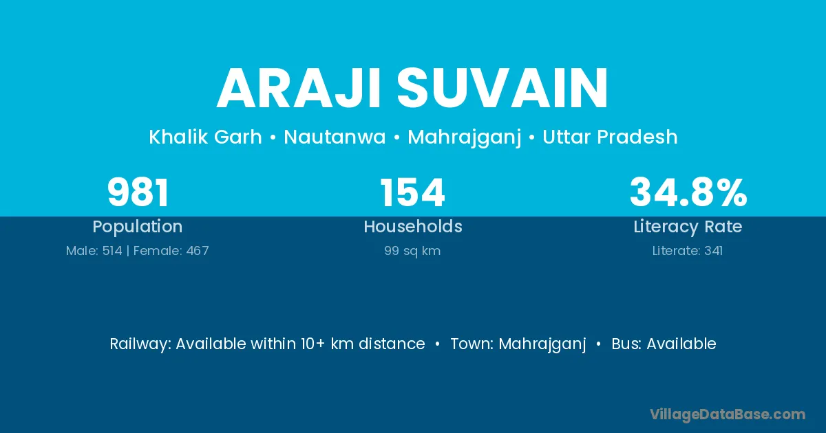 Mahrajganj is the nearest town to Araji Suvain village for major economic activities