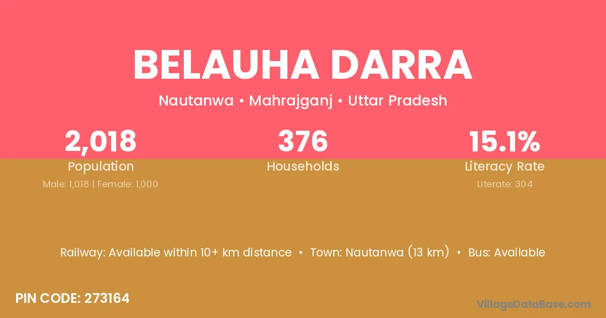 Nautanwa (13 km) is the nearest town to Belauha Darra village for major economic activities and is located approximately 13 km away.