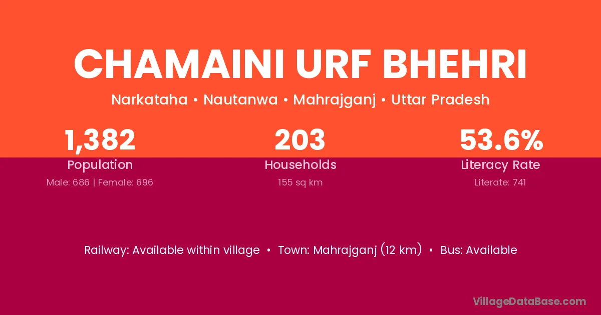 Mahrajganj (12 km) is the nearest town to Chamaini Urf Bhehri village for major economic activities and is located approximately 12 km away.