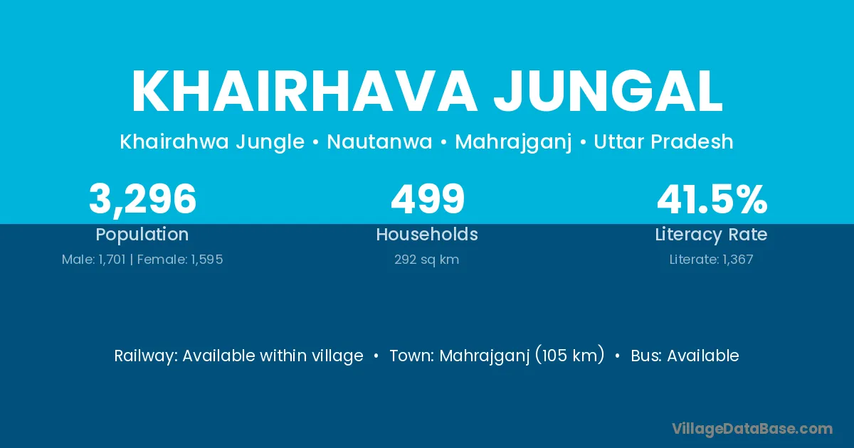 Mahrajganj (105 km) is the nearest town to Khairhava Jungal village for major economic activities and is located approximately 105 km away.