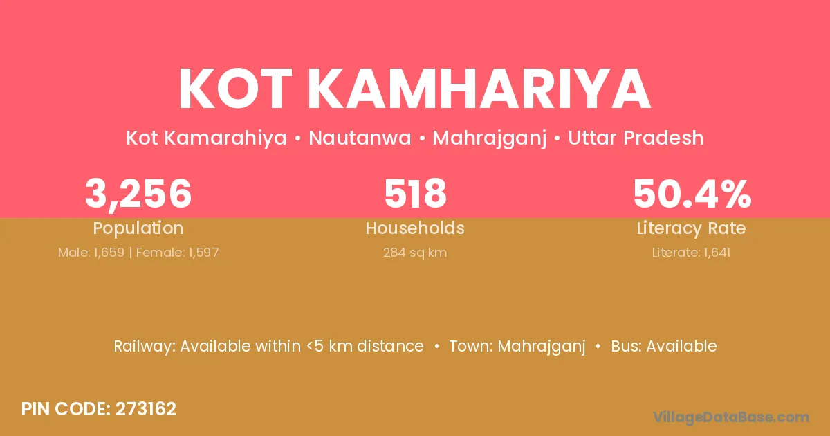 According to Census 2011 information, the village code of Kot Kamhariya village is 273162.