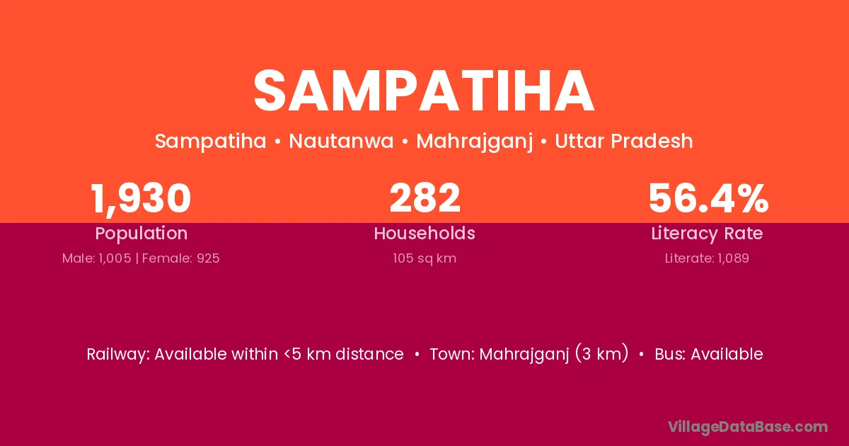 Mahrajganj (3 km) is the nearest town to Sampatiha village for major economic activities and is located approximately 3 km away.