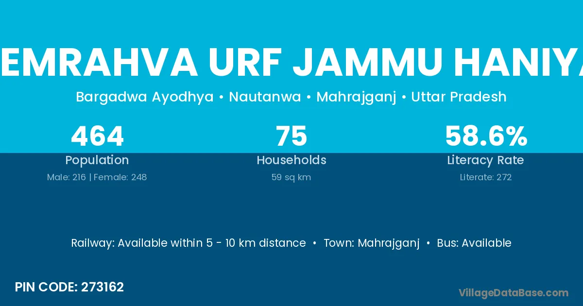 Semrahva Urf Jammu Haniya village is located in the Nautanwa Tehsil of the Mahrajganj district in Uttar Pradesh .