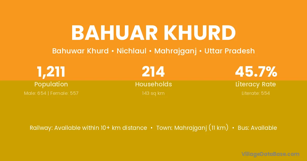 Mahrajganj (11 km) is the nearest town to Bahuar Khurd village for major economic activities and is located approximately 11 km away.