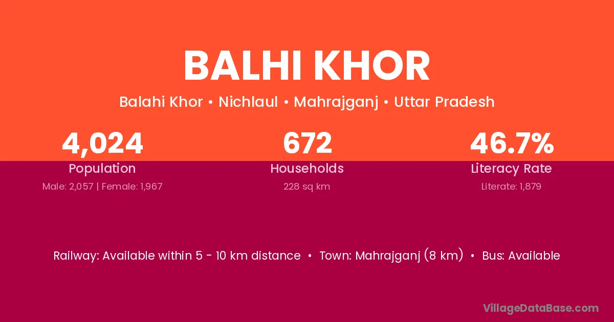 Mahrajganj (8 km) is the nearest town to Balhi Khor village for major economic activities and is located approximately 8 km away.