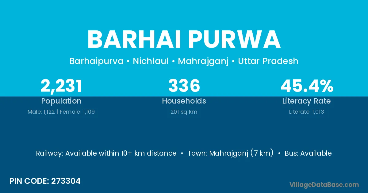 Mahrajganj (7 km) is the nearest town to Barhai Purwa village for major economic activities and is located approximately 7 km away.