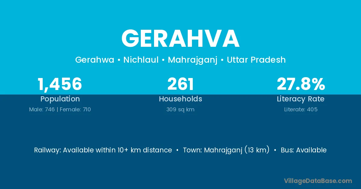 Mahrajganj (13 km) is the nearest town to Gerahva village for major economic activities and is located approximately 13 km away.
