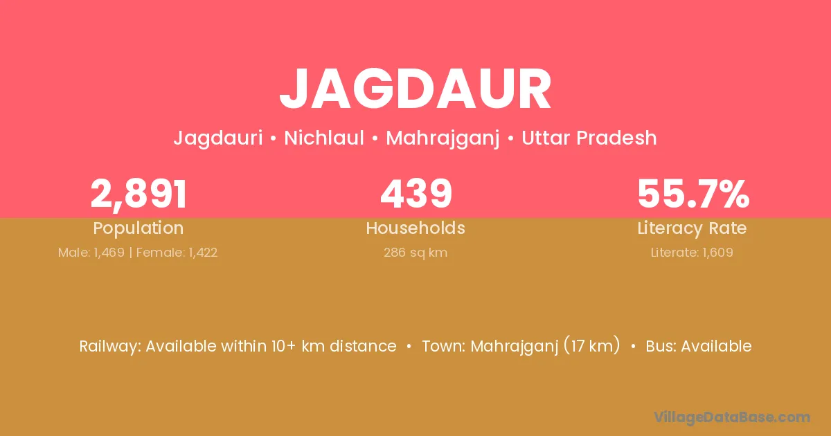 Mahrajganj (17 km) is the nearest town to Jagdaur village for major economic activities and is located approximately 17 km away.