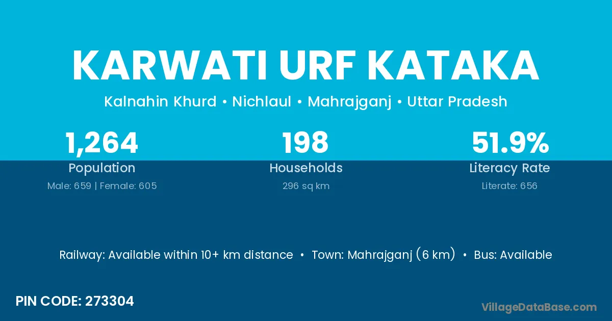 Karwati Urf Kataka village has a total population of 1,264 people, of which 659 are males and 605 are females.